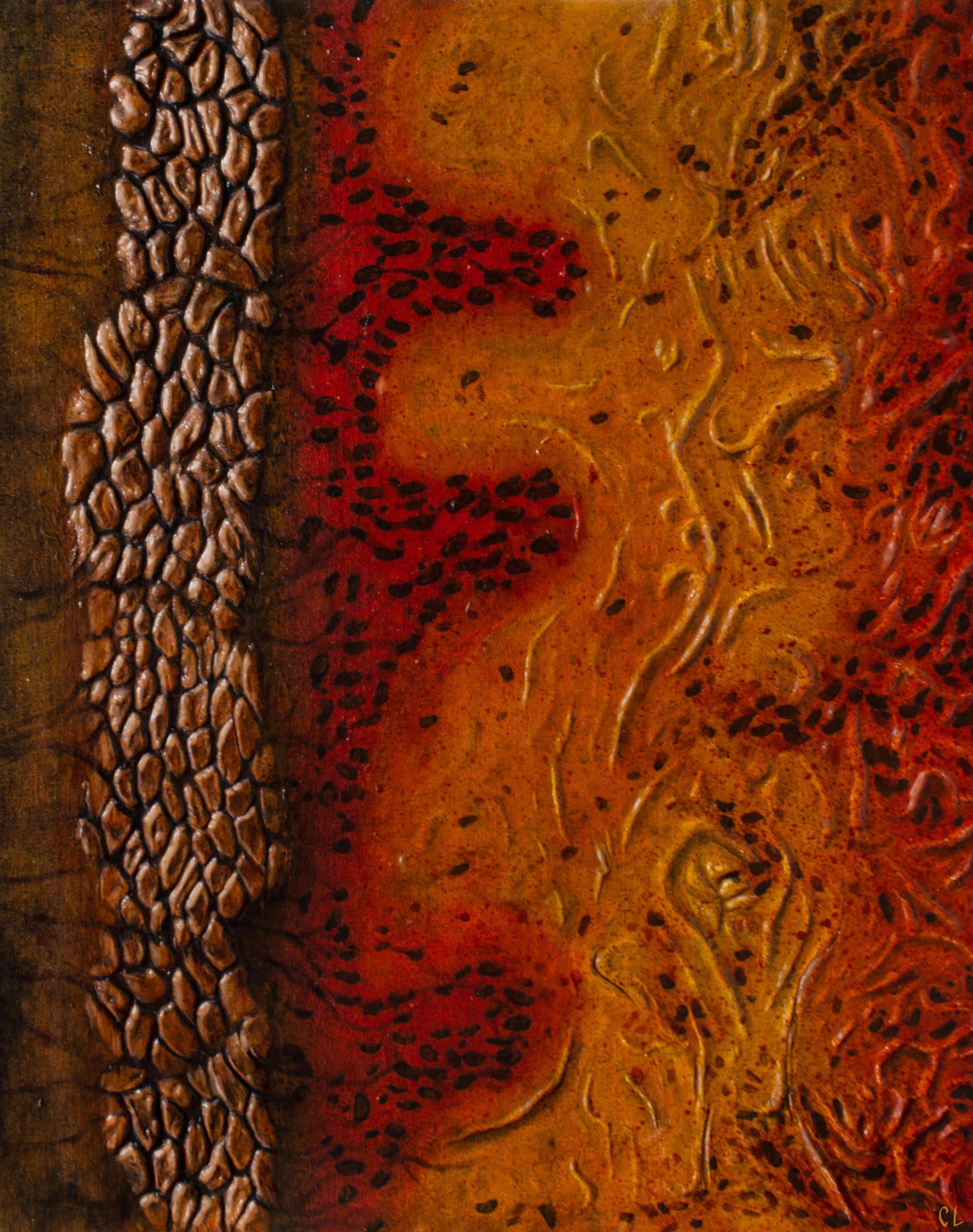 12” x 16” clay and acrylic on canvas. 2025.